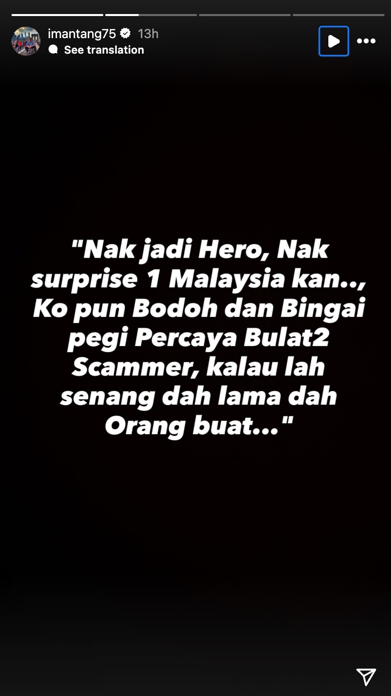 “Nak Jadi Hero, Kau Pun B*doh Bing*i Percaya Bulat-Bulat Scamm*r” – Iman Tang